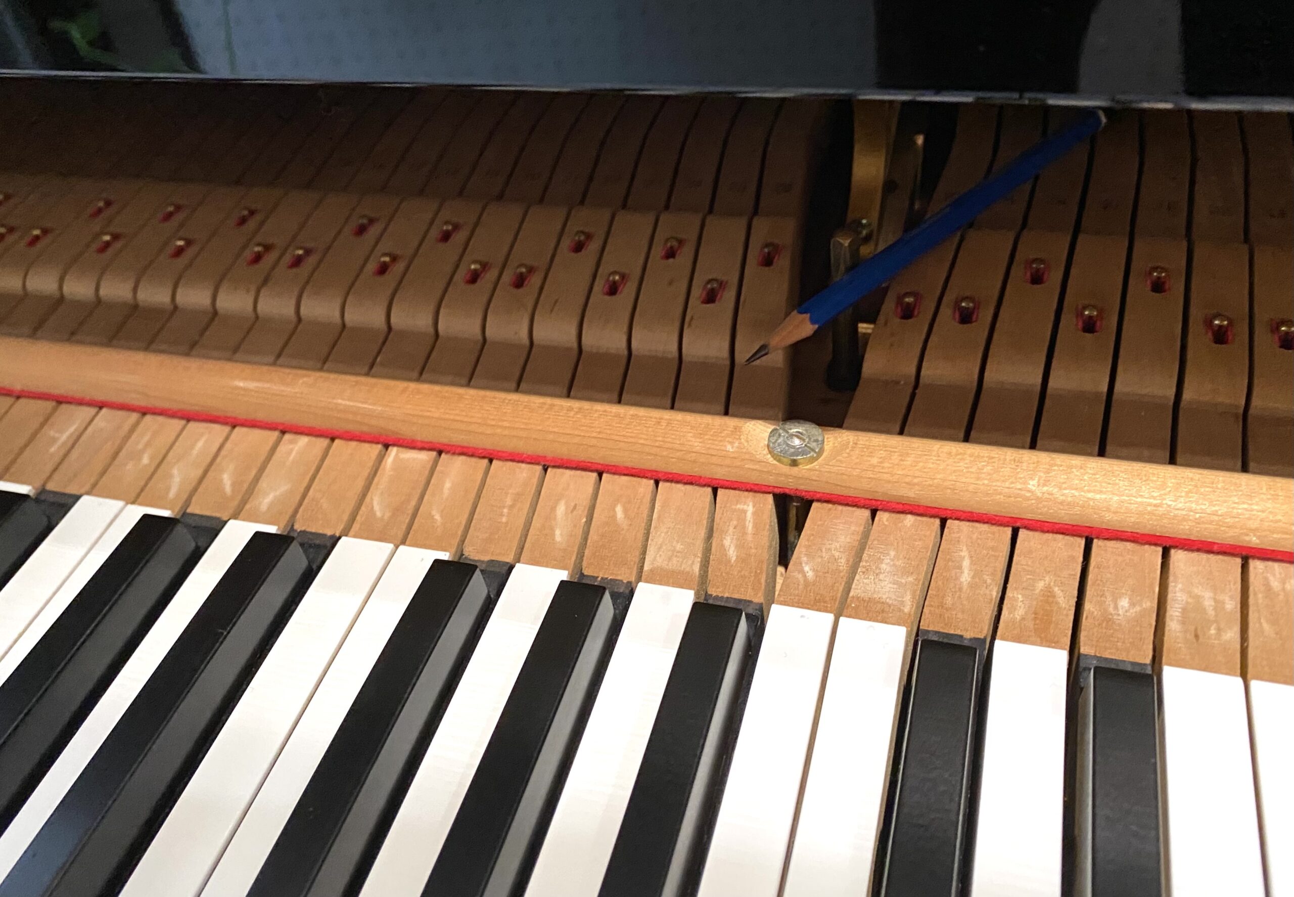 さて、この鉛筆がどこに行ってしまったのか?というと、ピアノの内部なのです。