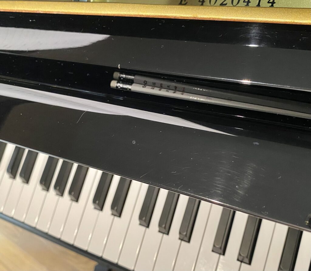 レッスン後に家族が鍵盤のフタを取り外し、生徒さんの鉛筆を無事に取り出しました。鉛筆は2週間後のレッスンでお渡しできました。
