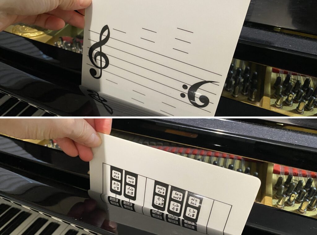 ちなみに、鉛筆だけではなく下敷きやコピー紙のような平面的なものも、スルっと滑り落ちてピアノ内部に入り込んでしまって、フタを外さないと取れなくなってしまうことがあります。