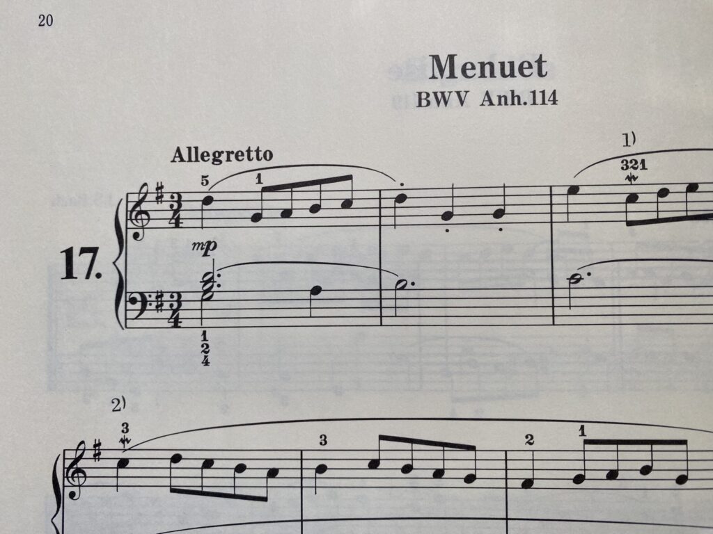 たとえば、超有名な「メヌエット ト長調」は、「プレ・インベンション」では17番に収録されていてJ.S.バッハ作曲とされていますが、現在の研究ではバッハではなく同じ時代の作曲家ペッツォルトによるものとされています。