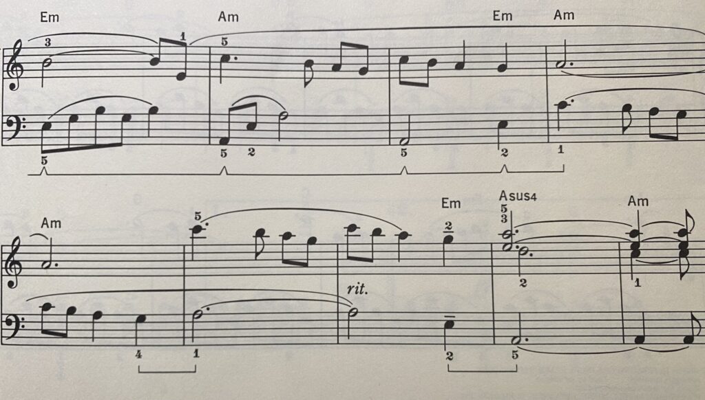 こうした右手と左手の表現のズレは、実はショパンなどの大人あこがれ曲やポップスにもよく使われているものです。