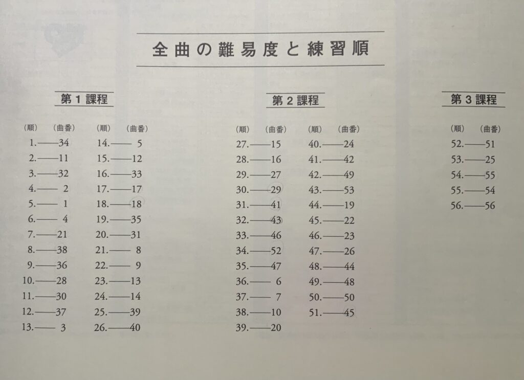 曲ごとの難易度とおすすめの練習順は93ページに載っています。
