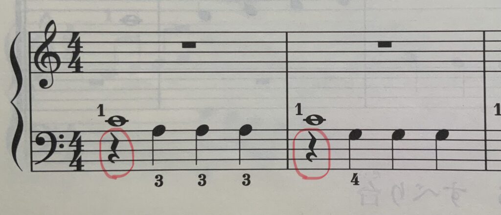 それに対して左手は一拍目にちゃんとドの音があるのに、なぜ四分休符が必要なのか?という疑問を感じるのだと思います。