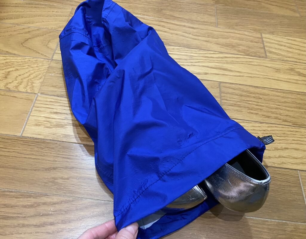 軽くて丈夫なので、扱いも気楽なものです。本番の日は、衣装と同じように無造作にササっとアウトドア用の袋に入れて持っていきます。